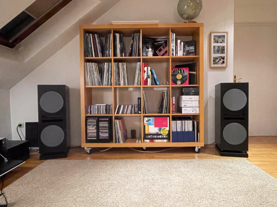 Die vier Eckhörner werden nun über 2 x Rotel Michi Monoblöcke angetrieben. Eine absolute tiefreichende Basskontrolle und federleichte Wiedergabe sind das Resultat.